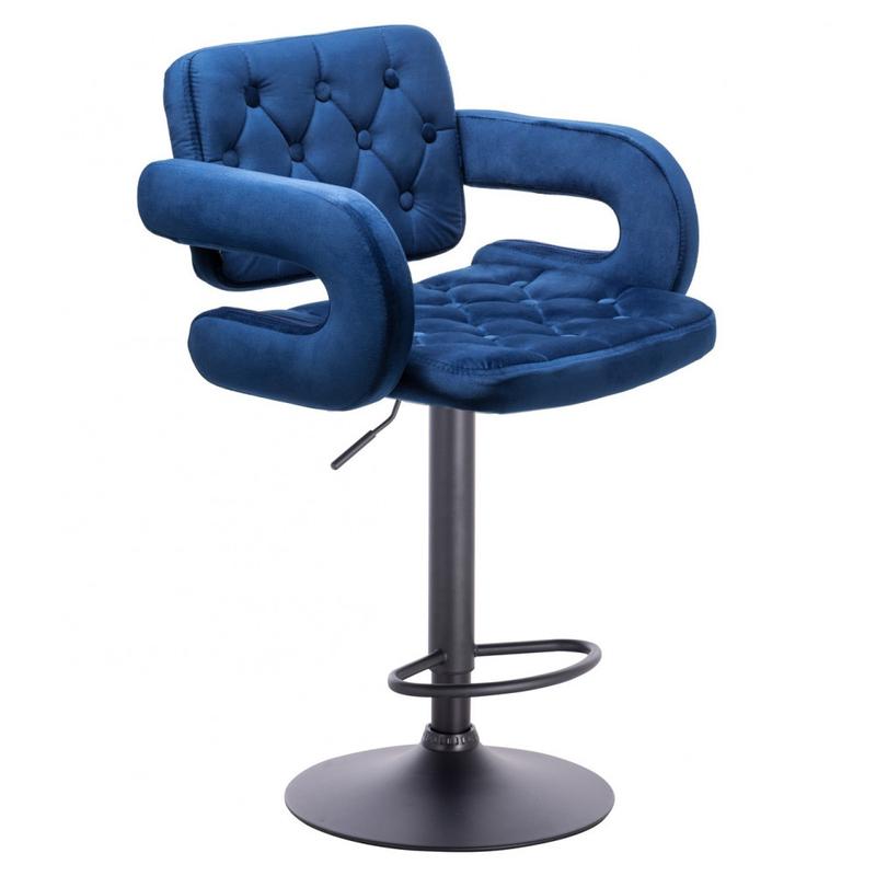 Стілець барний з регулюванням висоти хокер hrove form hr8403w синій велюр чорна основа