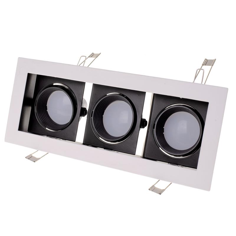 Світильник карданний ML-16-03 WH/BK MR16 поворотний, тому має ширші можливості, ніж звичайні вбудовані моделі. Освітлювальний прилад чудово підійде для офісів та інших бізнес-приміщень, також його можна використовувати вдома. Металевий каркас світильника виготовлений у білому кольорі, з чорними поворотними елементами з пластику. Прилад має 3 регульовані джерела світла, для його роботи потрібно 3 лампи. У цьому світильнику можна використовувати світлові фільтри під артикулом: 36-213, 36-214, 36-215, 36-216, 36-217, 36-218, 36-219. Патрон для світильника до комплекту не входить, його потрібно купувати додатково.