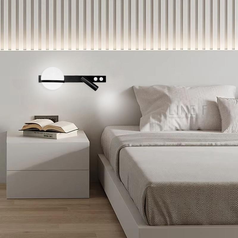 Бра у чорному корпусі із білим плафоном та спотом на 2 вимикачі