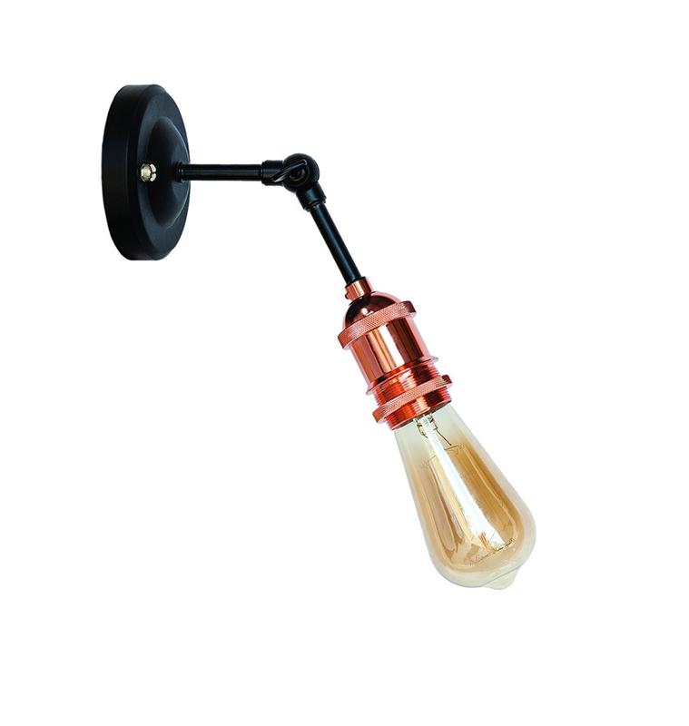 Колір кріплення до стіни - чорний Матеріал кріплення - метал Тип кріплення - настінний Патрон — AMP 12 Колір патрона - рожеве золото (rose gold) Тип цоколя — Е27 Максимальна потужність лампочки 60 Ватів Можливе використання лампи : світлодіодна, енергозбережна, розжарювання, лампа Едісона Комплектація лампою : немає