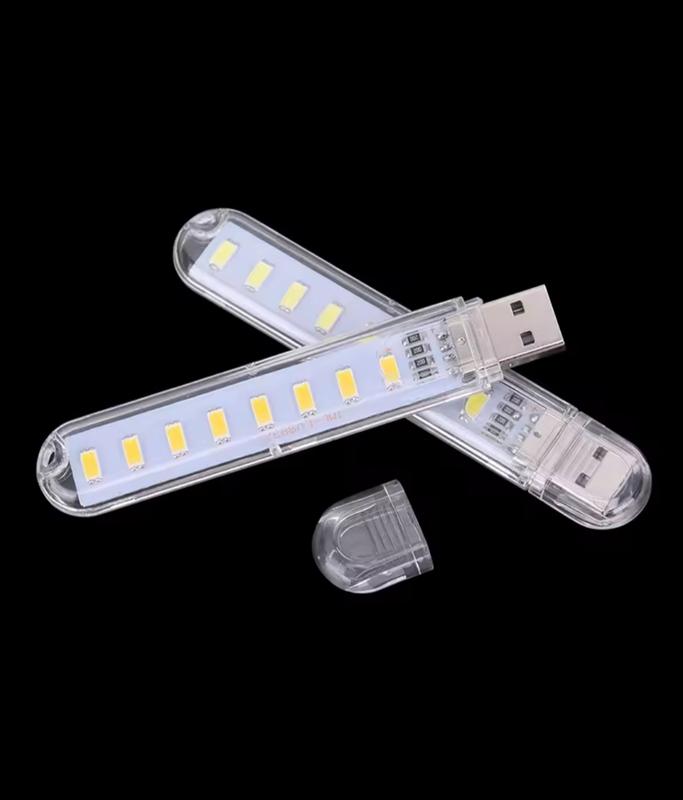 Міні ліхтарик, USB світильник на 8 світлодіодів, можна носити як простий брелок для ключів. Світло холодне. Можна використовувати для читання, під час ходьби, у походах або інших заняттях. Потужність лампи становить 4 Вт, що дає повноцінне відчуття освітлення. Світловий потік дає можливість освітити кімнату, працювати в гаражі, у темряві отримати повноцінне освітлення. Працює від будь-якого штатного USB роз'єму комп'ютера, ноутбука, power bank, зарядного від телефону, тощо. Тривалість роботи від power bank на 10000 mAh становить до 30 годин.