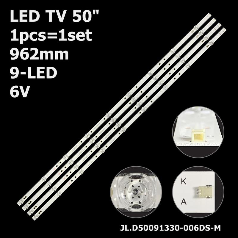 Артикул: ART-12724 Тип підкладки: алюміній Довжина планок: 962 мм Ширина планок: 14 мм Напруга одного світлодіода: 6V Кількість контактів на роз'ємі: 2 pin Кількість світлодіодів на планці: 9 LED Відстань між світлодіодами по центру: 115-110-108-107-107-108-110-115 мм Маркування планок: - CX50D09-ZC56AG-01 9S1P - CX50D09-ZC23AG-05 - JL.D50091330-006DS-M - 303CX500062 - 3080550P28DTZ2002 - HL-00500A30-0901S-10 Підсвітка підійде до моделей: - Akai: UA50LEM1T2USM - DEXP: U50E7000E - Denn: LE50DE85SUMAX - Digma: DM-LED50UQ31 - Dijitsu: DJTV501 - Harper: 50U660TS - Holleberg: HTV-LED50FHDS100T2 - Manta: 50LUA29E - SkyLine: 50UST5970, 50LST5970 - Skytech: ST-5050 - STARWIND: SW-LED50UA403 Підсвічування матриці (панелі): CX500DLEDM УВАГА: Перед продажем кожна планка пройшла перевірку своєї працездатності за допомогою спеціального тестера. Наголошуємо, що не рекомендується використовувати пристрої, які не призначені для цього, для перевірки світлодіодних лінійок. В нашому асортименті є спеціальні пристрої, призначені саме для перевірки працездатності LED-підсвітки. Також рекомендуємо перевірити довжину планок, відстань між центрами лінз, які зазначені в описі товару, а також переконатися, що конектор для підключення відповідає фото і візуальному розташуванню отворів для кріплення. Варто зазначити, що на одному телевізорі можуть бути встановлені різні види планок, а також відстань між центрами лінз може не збігатися, особливо для деяких бюджетних моделей телевізорів. Також рекомендуємо перевірити довжину планок, відстань між центрами лінз, які зазначені в описі товару, а також переконатися, що конектор для підключення відповідає фото і візуальному розташуванню отворів для кріплення. Варто зазначити, що на одному телевізорі можуть бути встановлені різні види планок, а також відстань між центрами лінз може не збігатися, особливо для деяких бюджетних моделей телевізорів.