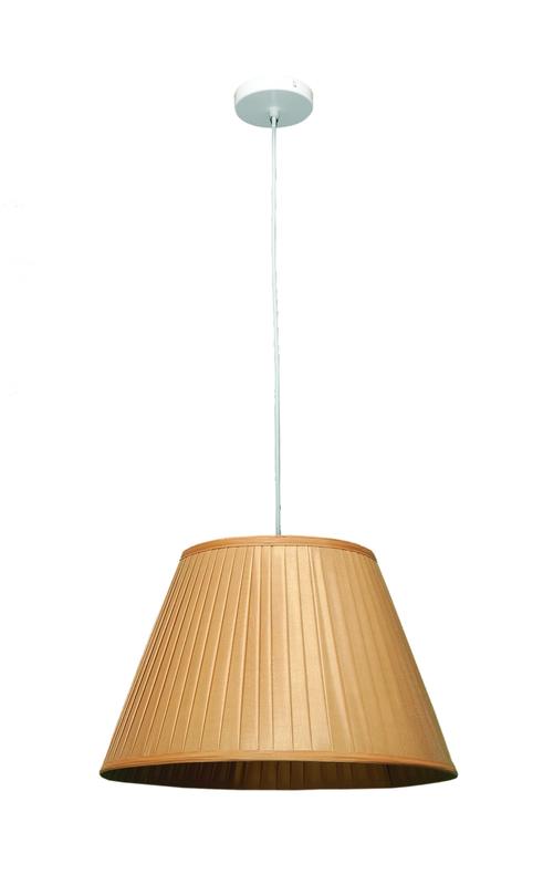 Підвіс у стилі модерн на одну лампу Колір плафона: темно-бежевий Матеріал плафона: тканина Розміри плафона: -висота: 255мм -діаметр: 400мм Розмір стельового кріплення: 105мм Довжина дроту: стандарт - 1 метр (можлива будь-яка довжина) Тип цоколя: Е27