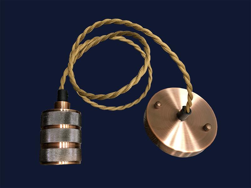 Підвіс на одну лампу в стилі LOFT Колір основи: мідь Колір дроту: золотий кручений Колір патрона: мідь Матеріал підстави: метал Матеріал патрона: алюміній Розмір стельового кріплення: 100мм Довжина дроту: стандарт - 1 метр Тип цоколя: Е27