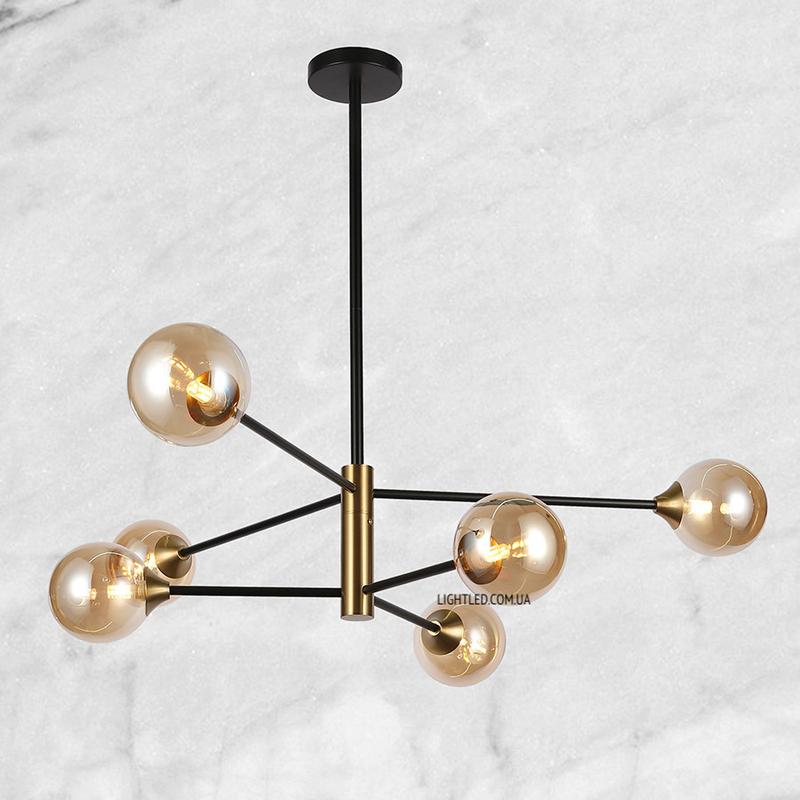 Чёрная люстра из белых шаров на 6 ламп (52-l7910-6 bk+wh)