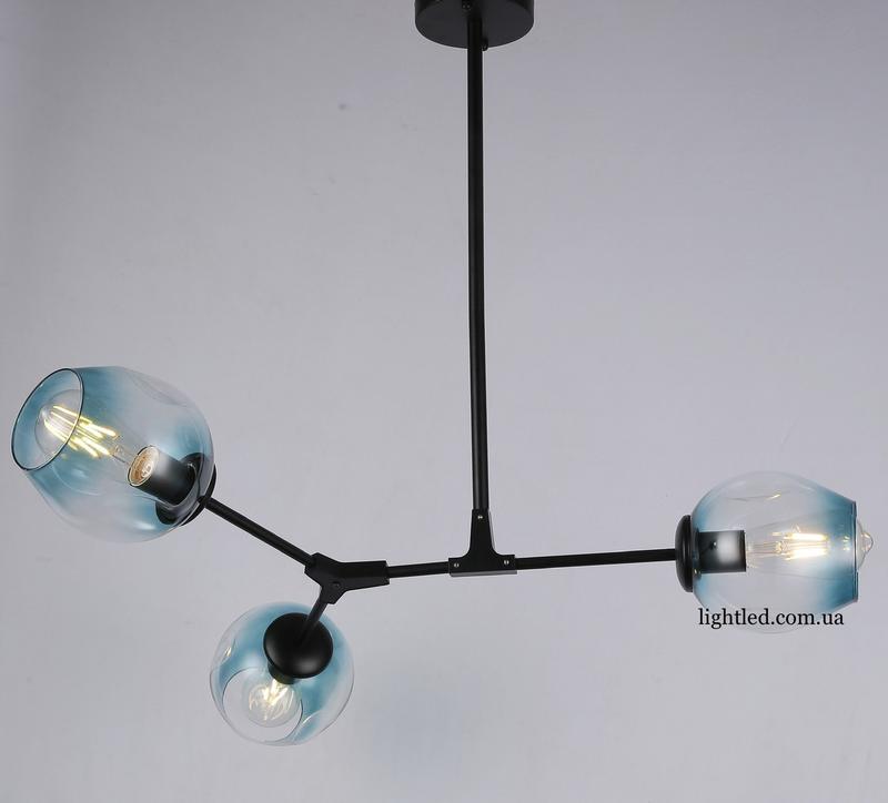 Чёрная люстра на 3 голубых молекулы (52-l7731-3 bk+bl)
