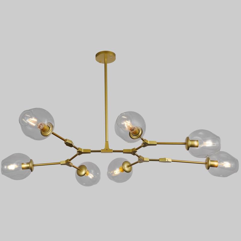 - Материал - металл, стекло - Цвет металла - золото - Цвет стекла - прозрачный - Источников света - 7 - Лампочек в комплекте - нет - Цоколь патрона - Е27 - Размер - 1200х750х250мм (д/ш/в) - Высота регулируется с помощью ценральной трубочки, которая делится на 20 и 30см - Высота может быть: 25/35/55см - Люстра может видоизменяться с помощью двигающихся трубочек в месте изгиба Интернет-магазин ***************