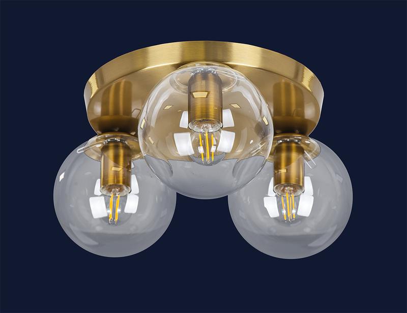 Матеріал - метал + скло Колір - бронза + прозорий Кількість плафонів - 3 Розмір - 150 мм Тип кріплення - стельовий коло Матеріал кріплення - метал Колір кріплення - бронза Джерело світла - 3 Е27 лампи Максимальна потужність лампочки - 40 W Можливість використання лампи LED, світлодіодна енергозберігаюча.
