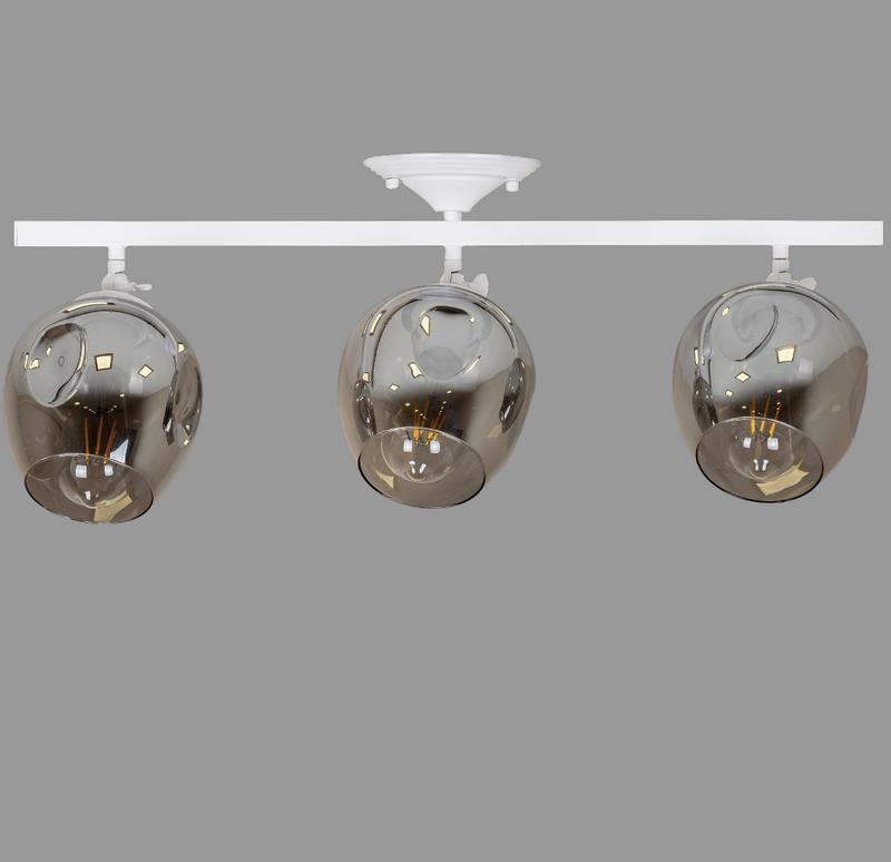 - Матеріал - метал, скло - Колір основи - білий - Колір плафона - графітовий - Джерел світла - 3 - Тип цоколя - Е27 - Розмір плафона - 14,5х16см (ш/в) - Стельова основа кругла - 14см - Довжина планки - 67см - Регулюється напрямок плафонів Інтернет-магазин освітлення ***************