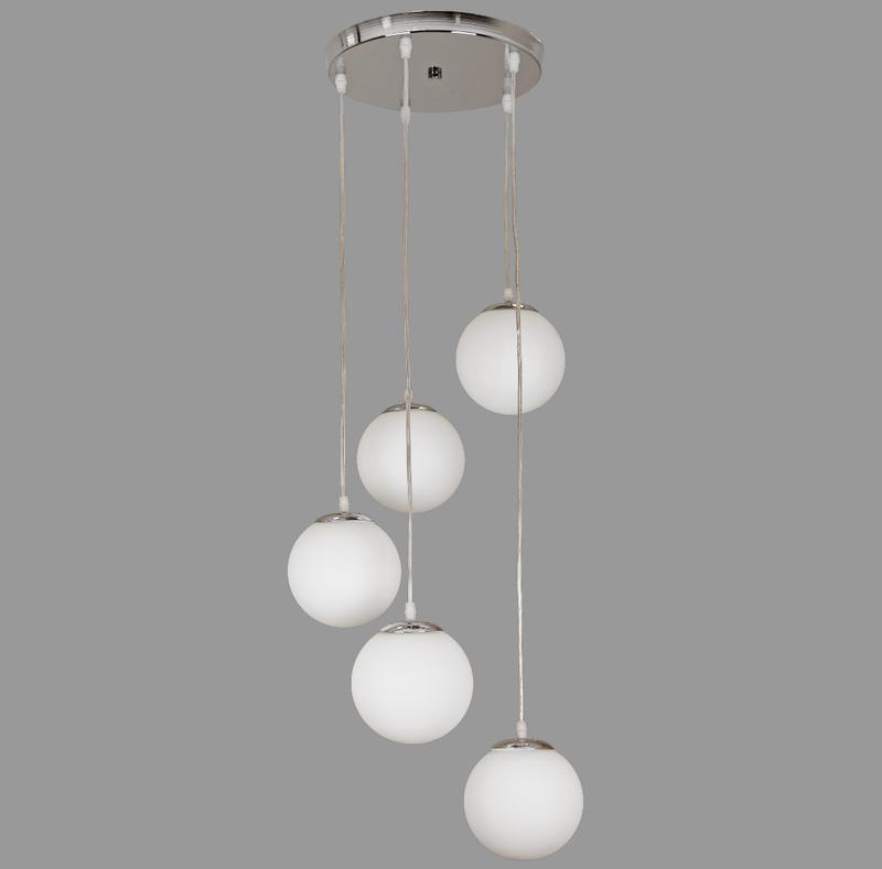 Срібна люстра із білих куль на 5 ламп (56-pr150f-5 cr+wh)