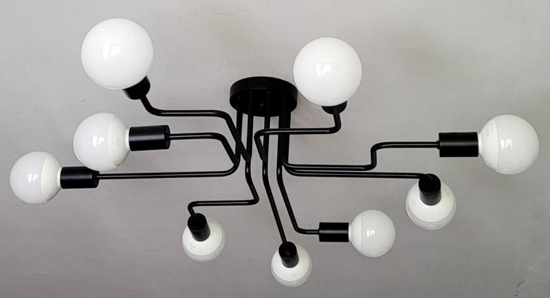 Люстра стельова красива та стильна на 9 ламп. У стилі лофт Матеріал: сталь Колір: чорний. під час замовлення іншого кольору +50 грн Цоколь стандартний е27 Комплект без ламп Гарантія 3 роки Розмір 95 см х 73 см (без урахування лампочок) висота до стелі 18 см Виробництво Україна НА ФОТІ НЕ ПЛАФОНИ А ЛАМПИ!!!