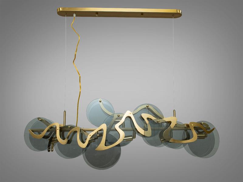 Ця розкішна підвісна люстра є втіленням унікальності та вишуканості. Кожен круглий скляний дифузор замерз у граційному танці з металевими воланами, що ніжно огортають їх. Ці елементи не просто відбивають світло, а й розсіюють його, створюючи ефект тепла, розкоші та глибини у просторі, де вона займає місце. Люстри ідеально вписаються в сучасні будинки, квартири, кафе, арт-простірства, коворкінги, кенсруми. За допомогою регулювання шнура можна встановити оптимальну висоту світильника. Лампи для світильника Ви можете вибрати самі, таким чином Ви можете регулювати яскравість та колір свічення.
