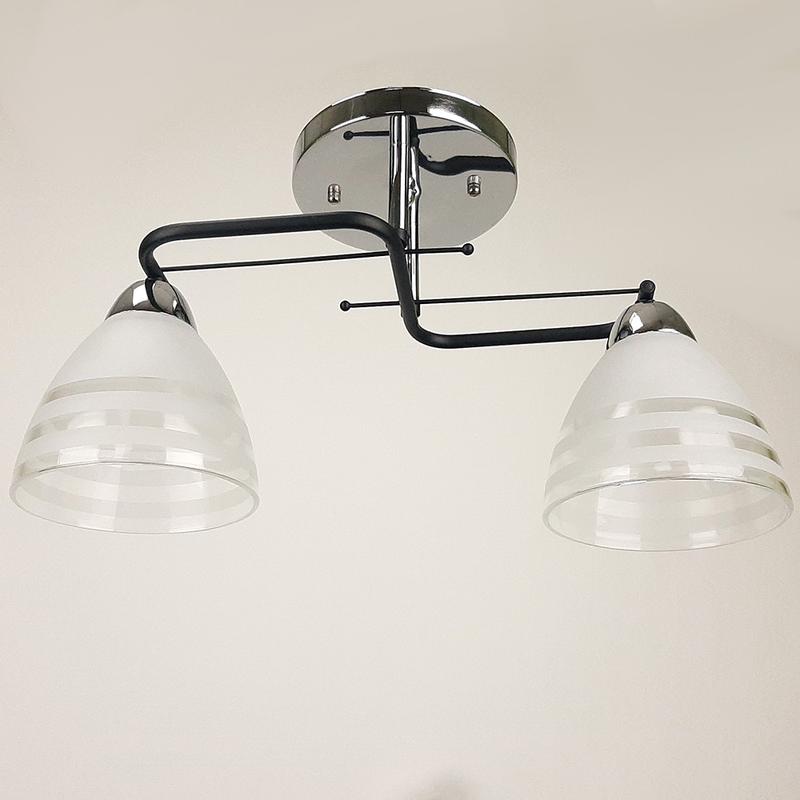 Люстра на 2 лампочки осветит хорошо до 9 кв. Рекомендуется использовать светодиодные лампочки по 6 или 10 ват. Не высокая, красивая люстра хорошо будет смотрется в вашей комнате.