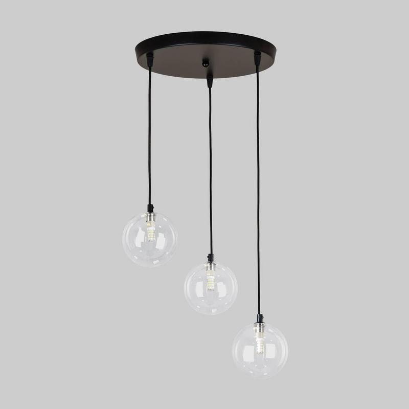 Чорна люстра з прозорими 15см плафонами (61-p150f-3 bk+cl 300)