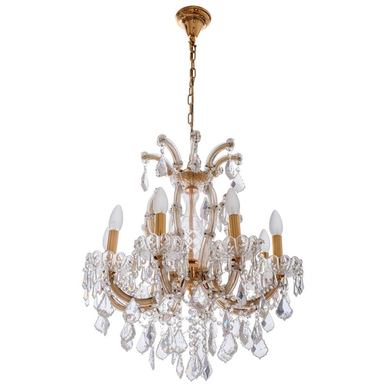 Розкішна люстра BCL-057S/8 в палацовому стилі манить своєю загадковістю і красою. В її художньому оформленні є якась магія, адже вона ніби переносить нас в епоху середньовіччя і дарує відчуття присутності на балу або пишному прийомі. Під час виготовлення люстри майстри виграшно поєднали два матеріали: штучний кришталь і метал. Кришталь переливається на світлі і утворює барвисті відблиски на поверхні меблів та побутової техніки. До металевого каркаса прикріплені маленькі скляні плафони, які візуально нагадують підсвічники. Каркас золотистого кольору, надає люстрі додаткового блиску. Для роботи люстри найкраще використовувати свічкоподібні лампочки. Декорована люстра безліччю кришталевих підвісок і ланцюжків, які надають їй урочистого і ошатного вигляду. Люстра розрахована на 8 лампочок з цоколем Е14 потужністю 60 Вт. Якщо ви розмістите таку люстру у себе вдома, відчуття свята не залишить вас ніколи. Висота освітлювальних приладів з легкістю регулюється, її можна змінити піднявши чи опустивши ланцюг, мотузку або трос. Таким чином люстра буде висіти на більшій, або меншій висоті в залежності від ваших уподобань. Більше асортименту – в категорії Люстри, інші світильники – в розділі Освітлення, лампочки тут. Купити товар ви можете як на сайті, так і в магазинах Києва та інших міст України. На всю продукцію діє гарантія. Поради про те, як вибрати люстру читайте в статті. Висота освітлювальних приладів з легкістю регулюється, її можна змінити піднявши чи опустивши ланцюг, мотузку або трос. Таким чином люстра буде висіти на більшій, або меншій висоті в залежності від ваших уподобань.