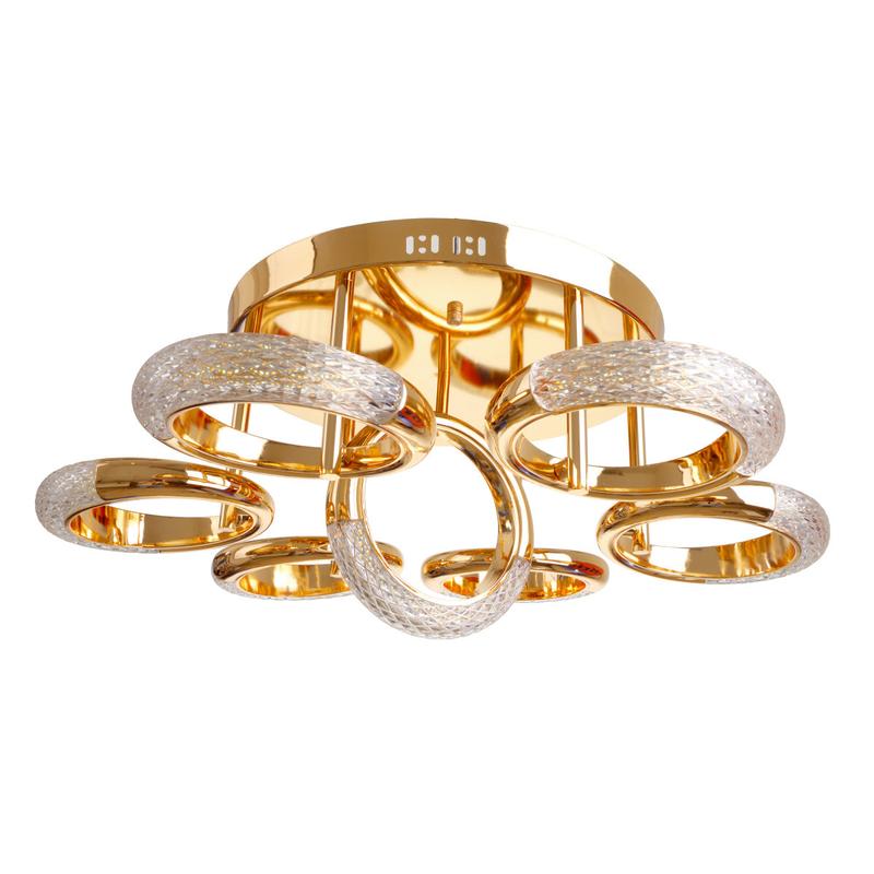 Світлодіодна люстра BR-01 667C/7 LED 70W G — це вишуканий світильник зі стильним, оригінальним дизайном золотого кольору. Модель підійде для спальні, вітальні або передпокою із сучасним інтер'єром. Складається із семи плафонів, що схожі на обручні кільця, інкрустовані діамантами, які слугують вбудованими світлодіоди загальною потужністю 70 Вт. Плафони кріпляться до основи, яка монтується до стелі за допомогою монтажної планки. Світлодіоди генерують світловий потік із видатністю 60 лм/Вт. LED-джерела дуже економні та мають тривалий термін експлуатації. Люстра створює потужний світловий потік із високим індексом кольоропередавання (80Ra). Люстра призначена для роботи в мережі змінного струму з номінальною напругою 220 В. Рівень захисту корпусу від потрапляння всередину пилу та вологи ІР20.