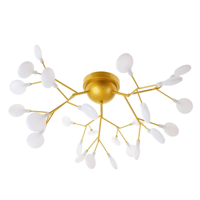 Потолочная люстра BR-01 636C/27 G4 G это современный модный светильник со стильным и оригинальным дизайном золотистого цвета. Модель подойдет для спальни, гостиной, прихожей или зала с современным интерьером. Люстра изготовлена из металла и внешне напоминает ветви дерева, обильно покрытые белым цветением - двадцатью семью пластиковыми плафонами белого цвета. Основа светильника крепится к потолку с помощью монтажной планки. В качестве источника света используются двадцать семь лампочек с цоколем G4 мощностью 20 Вт. Это могут быть светодиодные или галогенные лампы. Использование светодиодных позволит значительно уменьшить затраты электроэнергии. К тому же светодиодные элементы имеют длительный срок работы, почти не греются, излучают комфортный свет, не вредят здоровью и не требуют специальной утилизации. Люстра предназначена для эксплуатации в сети переменного тока с номинальным напряжением 220 В. Уровень защиты корпуса от попадания внутрь пыли и влаги ІР20. Габариты светильника 70 х 40 см. Дизайн люстры делает модель подходящей для интерьеров, оформленных в современных стилях.