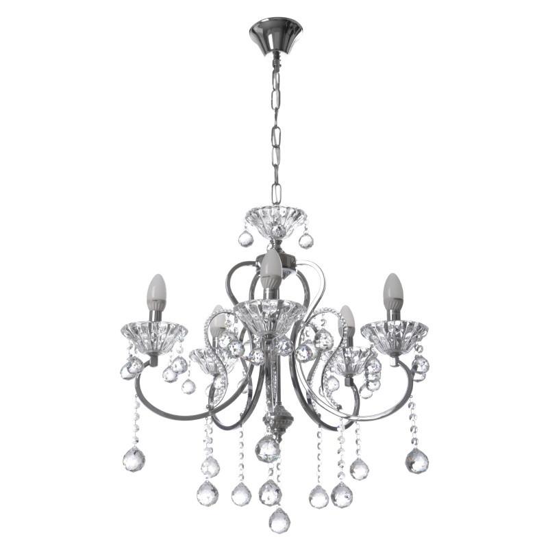 Люстра в класичному стилі BCL-659S/5 E14 CH не залишить байдужим жодного вашого гостя, жодного сусіда, та й ваш погляд буде тішити протягом багатьох років, бо класичний стиль завжди в моді. Виготовлена люстра з металу і скла, поєднує в собі всі характерні риси цього стилю, а саме стриману розкіш, бездоганний смак і якісні матеріали. Її конструкція складається з металевого каркаса хромованого кольору, на ріжках знаходяться кріплення для ламп, поміщені в скляні чаші невеликого розміру. Додатково люстра прикрашена безліччю декоративних скляних підвісок з камінчиками, які у ввімкненому стані переливаються різнобарвними фарбами. Для роботи люстри необхідно використовувати п'ять лампочок з цоколем Е14 потужністю 60 Вт. Краще вибрати лампи свічкоподібної форми, для того, щоб передати дух минулих часів і витримати дизайн люстри в одній концепції. Повісити її ви зможете в будь-якій кімнаті в будинку, але краще у вітальні. Так кожен проведений вечір вдома стане незабутнім. Висота освітлювальних приладів з легкістю регулюється, її можна змінити піднявши чи опустивши ланцюг, мотузку або трос. Таким чином люстра буде висіти на більшій, або меншій висоті в залежності від ваших уподобань. Більше асортименту – в категорії Люстри, інші світильники – в розділі Освітлення, лампочки тут. Купити товар ви можете як на сайті, так і в магазинах Києва та інших міст України. На всю продукцію діє гарантія. Поради про те, як вибрати люстру читайте в статті. Висота освітлювальних приладів з легкістю регулюється, її можна змінити піднявши чи опустивши ланцюг, мотузку або трос. Таким чином люстра буде висіти на більшій, або меншій висоті в залежності від ваших уподобань.