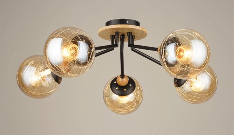 Декоративна люстра Sirius-це втілення елегантності і сучасного дизайну, яке додасть шарму і стилю вашому приміщенню. З довжиною 645 мм, шириною 645 мм і висотою 220 мм, люстра вражає своєю величчю і вишуканим дизайном. Каркас, виготовлений з металу чорного кольору і дерева, надає люстрі неповторний характер і вишуканість. Вбудовані металеві прутики створюють унікальний декор, що підкреслює елегантність і розкіш люстри. П'ять круглих скляних плафона пропускають світло, надаючи йому м'якість і теплоту. Люстра оснащена цоколем E27, що дозволяє встановлювати лампочки до 60 Ватт. Ви можете вибрати лампочки в залежності від ваших уподобань і потреб освітлення. Лаконічний дизайн цієї люстри не має нічого зайвого - він простий, але ефективний. Він легко впишеться в будь-який стиль інтер'єру, надаючи йому естетику і комфорт.