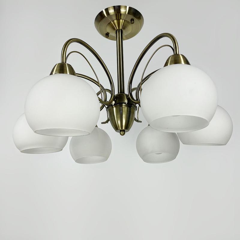 Люстра на 6 плафонів Колір бронза Цоколь Е27 Висота 45 см Діаметр 65 см