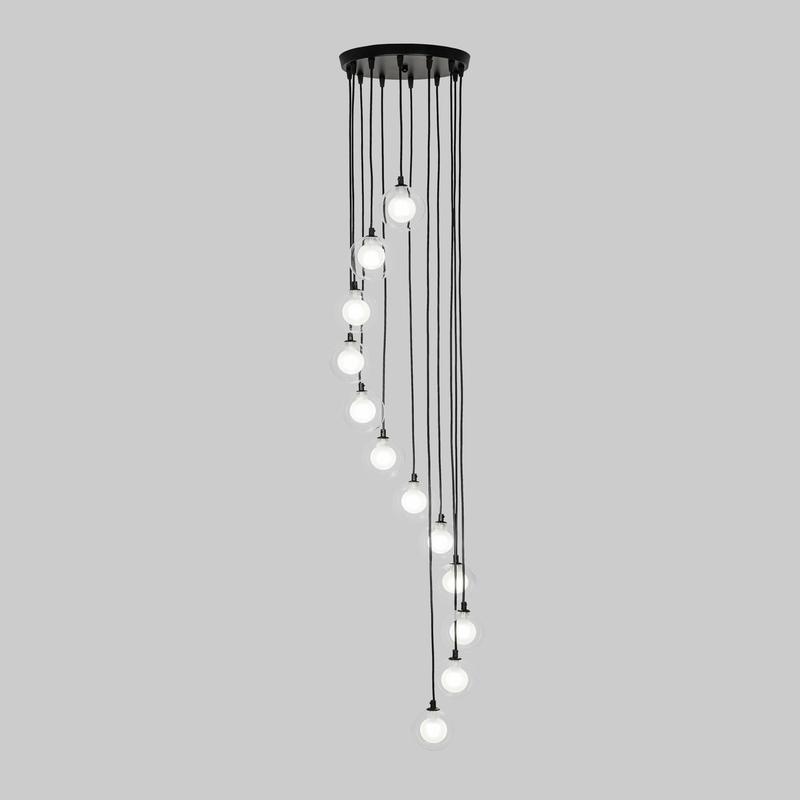 Незвичайна і стильна сучасна люстра чудово виглядатиме в барі, ресторані, на терасі або у вашому будинку. Цікавий та вишуканий дизайн люстри буде акцентом у вашому інтер'єрі. Корпус люстри виконаний з металу та покритий чорною фарбою, а також прикрашений скляними подвійними прозоро-білими плафонами, що створює ідеальне поєднання. Ця модель підійде для стандартних і високих стель, тому що регулюється довжина проводів, завдяки чому ви можете встановити висоту люстри так, як вам буде зручно (40-170 см). За попереднім замовленням можемо збільшити довжину дротів до 5 м. Люстра розрахована на 12 ламп і даватиме досить яскраве освітлення для приміщення 20-30 кв.м. - Матеріал - метал, скло - Колір основи - чорний - Колір подвійного плафона - білий матовий і прозорий - Джерел світла - 12 - Тип цоколя - G9 - Стельова основа - 30см - Діаметр плафона - 10см - Висота кожного плафона регулюється окремо від 40 до 170см - Можна збільшити довжину дрота до 5м Інтернет-магазин освітлення ***************