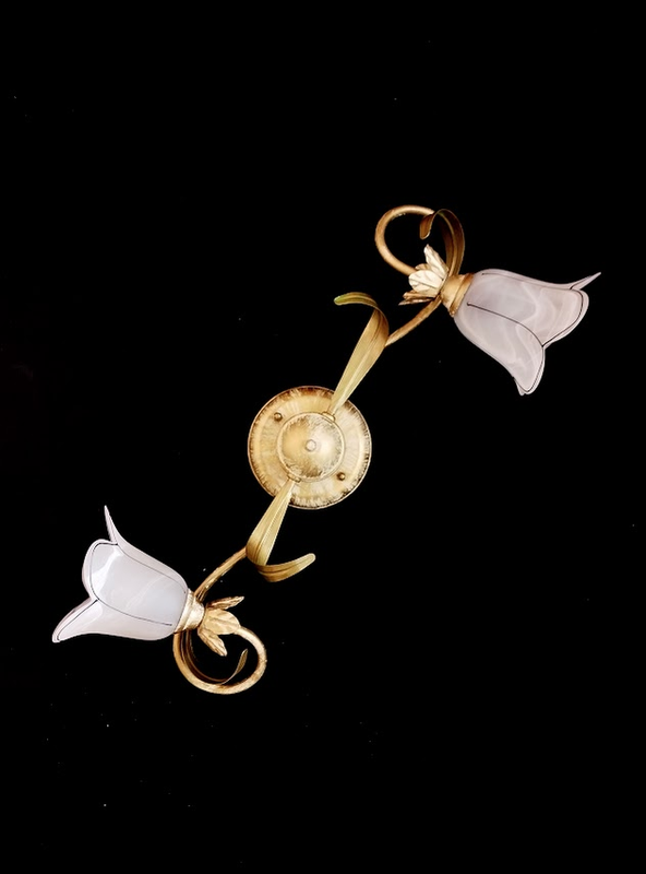 Люстра ручної роботи в стилі флористика NBLight Матеріал корпусу — метал Покриття корпусу — емаль (ручний розпис) Матеріал плафонів — скло Тип патрона — Е14 Кількість ламп — 2 Довжина — 65 см Ширина — 30 см Висота від стелі — 25 см