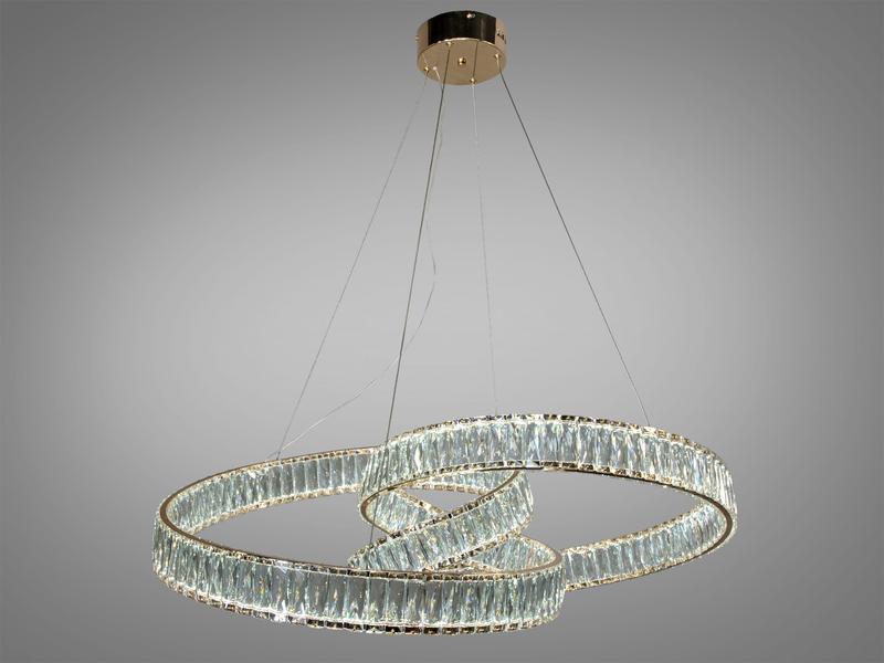LED підвісна люстра на тросах 175W 3200K-6500K кришталь (2 варіанти хром/золото на вибір) Обирайте сучасну LED підвісну люстру на тросах із дизайном стрічки Мебіуса для стильного та елегантного освітлення віталень, спалень чи кафе. Хромований металевий каркас із кришталевими стрічками створює сяйво 9625 Лм із регульованою температурою 3200K-6500K. Регульована висота (60-145 см) і пульт управління додають комфорту. Основні переваги: Унікальний дизайн: Форма стрічки Мебіуса з кришталем. Гнучкість: Регулювання висоти та кольору світла. Комфорт: Управління пультом і димером. Енергоефективність: LED з довговічністю до 50 000 годин. Гарантія: 2 роки. Технічні характеристики: Тип: Підвісна люстра Потужність: 175W Світловий потік: 9625 Лм Колірна температура: 3200K, 4100K, 6500K Висота: 60-145 см Діаметр: 55 см Довжина: 90 см Діаметр основи: 16 см Вага: 16 кг Площа освітлення: 20-35 м² Матеріал каркасу: Метал (хром) Матеріал плафона: Кришталь Ступінь захисту: IP20 Тип кріплення: Монтажна планка (довжина 15 см) Оснащення: Пульт, димер Тип керування: Настінний вимикач, пульт Габарити упаковки: 66x98x34 см Об’єм упаковки: 0.22 м³ Гарантія: 2 роки Розширене призначення: Житлові приміщення: Вітальня, спальня, дитяча, кухня, кабінет. Комерція: Офіси, кафе, ресторани. Інтер’єри: Сучасний, хай-тек, мінімалізм. Комплект постачання: LED люстра – 1 шт. Монтажна планка – 1 шт. Пульт дистанційного керування – 1 шт. Інструкція – 1 шт.