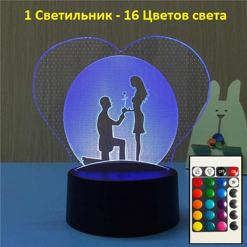 Ідея для подарунка дівчині на 14 лютого 3d світильник романтика, замовити подарунок на 14...