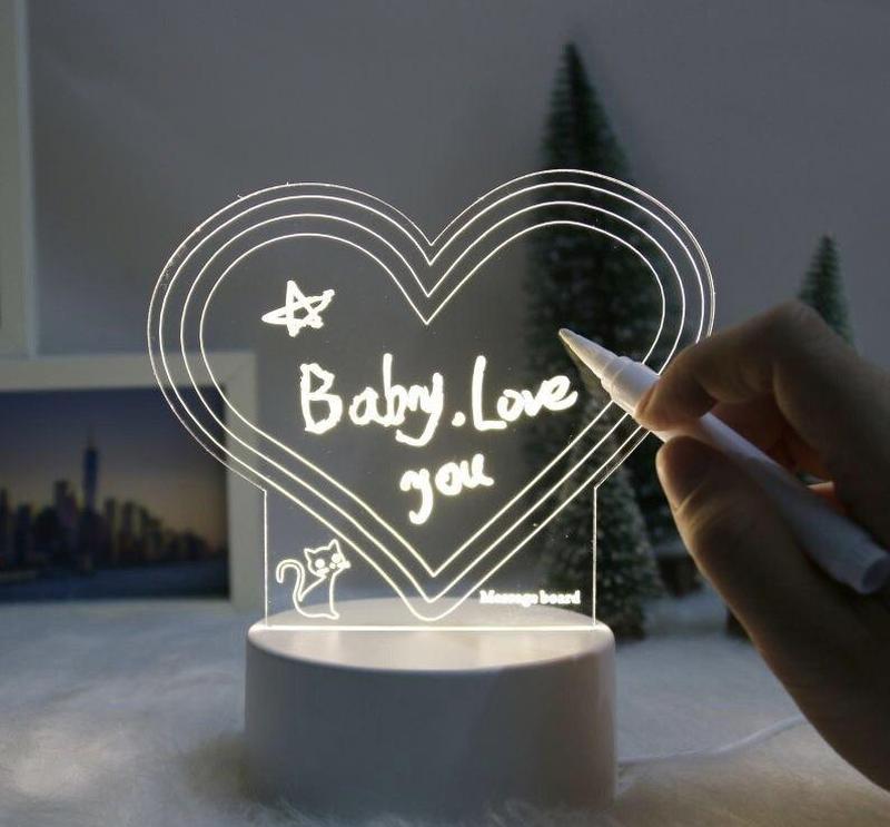Світильник нічник "Серце з котиком", 3D планшет USB, ручка для написів 3D-світильник — чудовий подарунок для найближчих! Особливо якщо ви не знаєте, що подарувати, але здивувати людину дуже хочеться. Такий подарунок підійде всім без винятку: чоловікам і жінкам, дітям і дорослим. Він прикрасить будь-який інтер'єр і створить затишну та теплу атмосферу. Світильник складається з основи й акрилової пластини За допомогою спеціального гравіювання на пластині та заломлення світла створюється 3D-ефект 3D нічник стане оригінальним подарунком на будь-яке свято. Це 3D-лампа-ілюзія може зображати візерунок, коли вона загоряється, а оптична акрилова плоска дошка з лазерним гравіюванням може дати вам приголомшливий візуальний 3D-ефект. Поради щодо використання: Витирати маркер краще спочатку вологою серветкою, а потім сухою. Так воно не затиратиметься. Скло краще не брати руками. Клапість скло краща на серветку, так не з'являтимуться подряпини. У комплект входить: -Білий маркер -Ночник -Акрилова стійка -Кабель живлення -Блок живлення. Розмір: 14.5см х 13см Живлення 5V (можливо від розетки або павербанка) Він обов'язково здивує та вразить діти або коханця. Отже, це буде унікальний подарунок на день народження або День Святого Валентина для дітей, друга або подруги.