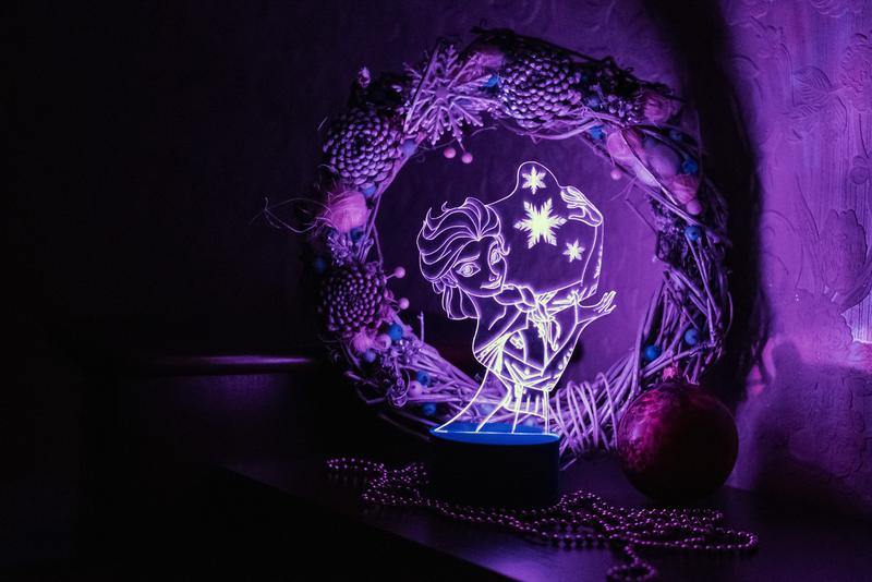 3d-світильник ельза frozen, 3д-нічник, кілька підсвічувань (батарейка+220в)