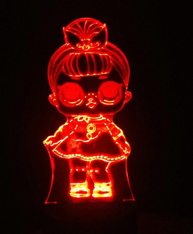 3d-світильник лялька лол 2 сестричка, lol, 3д-нічник, кілька підсвічувань (на пульті)