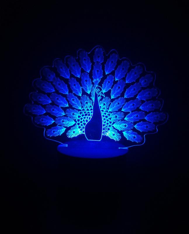 3d-світильник павич, 3д-нічник, кілька підсвічувань (батарейка+220в)