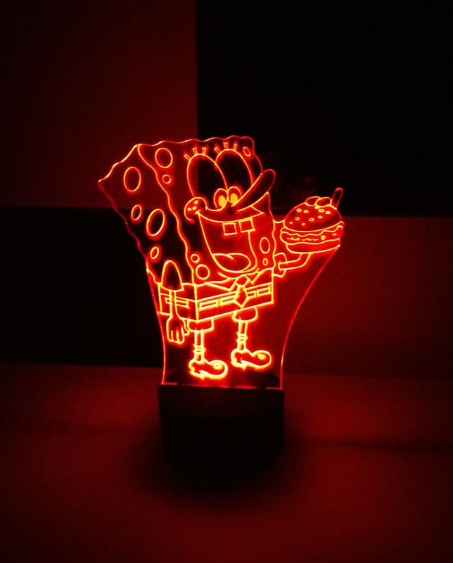 3d-світильник спанч боб, губка боб, 3д-нічник, кілька підсвічувань (батарейка+220в)