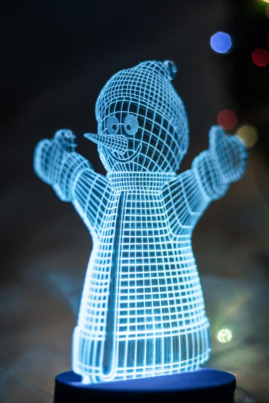 3d-світильник сніговик, 3д-нічник, кілька підсвічувань (батарейка+220в)