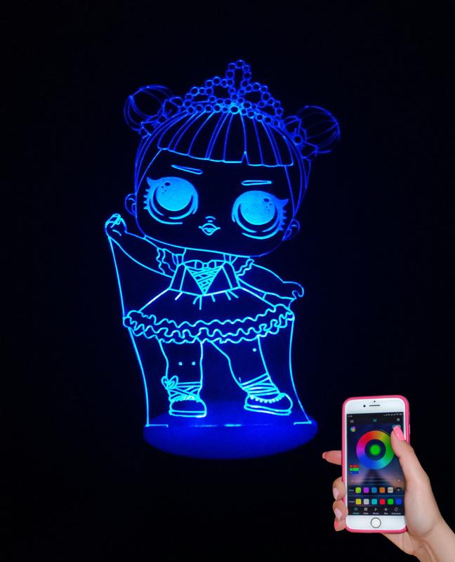 3d-светильник кукла лол 1 балерина, 3д-ночник, несколько подсветок (на bluetooth)