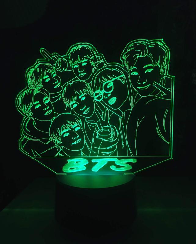3d-світильник бтс bts, 3д-нічник, кілька підсвіток (батарейка + 220 в)