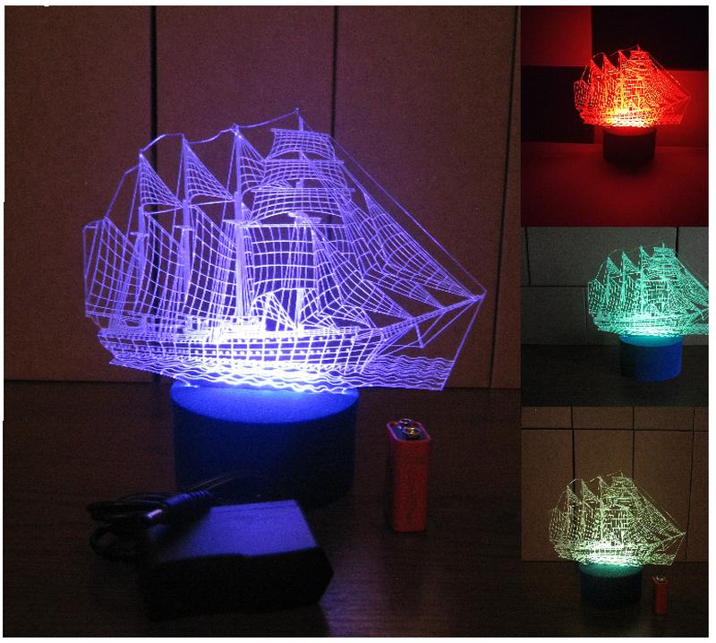 3d-світильник корабель, 3д-нічник, кілька підсвічувань (батарейка+220в)
