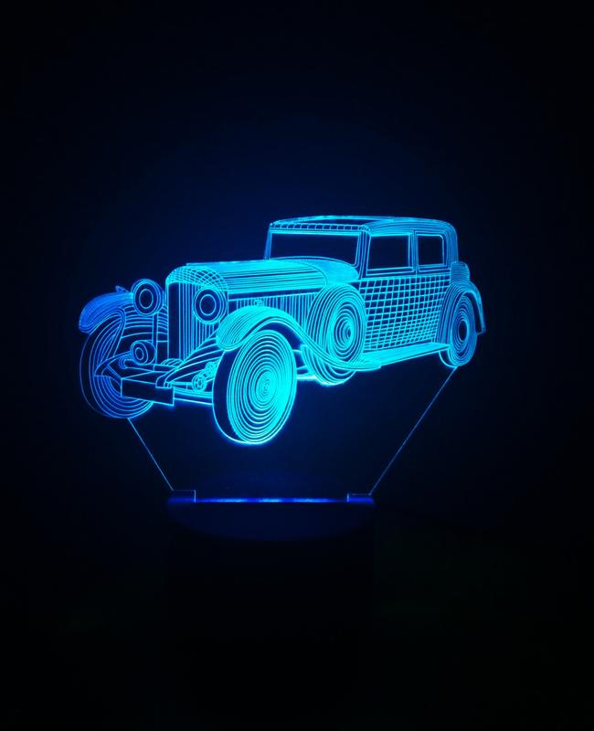 3d-світильник ретро автомобіль, 3д-нічник, кілька підсвічувань (на пульті)