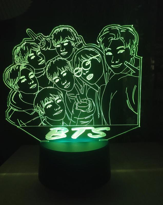 3d-світильник бтс bts, 3д-нічник, кілька підсвіток (на пульті)