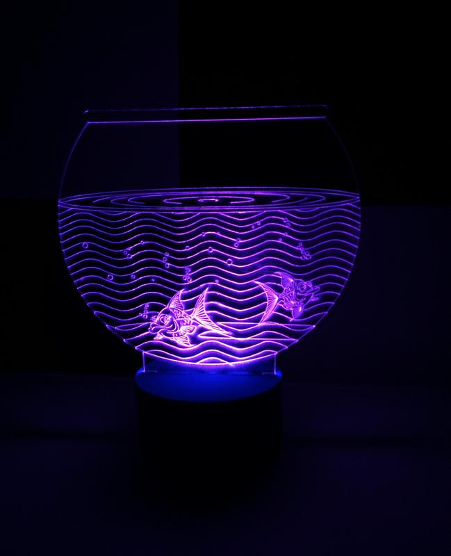 3d-світильник акваріум з рибками, 3д-нічник, кілька підсвічувань (на батарейці)
