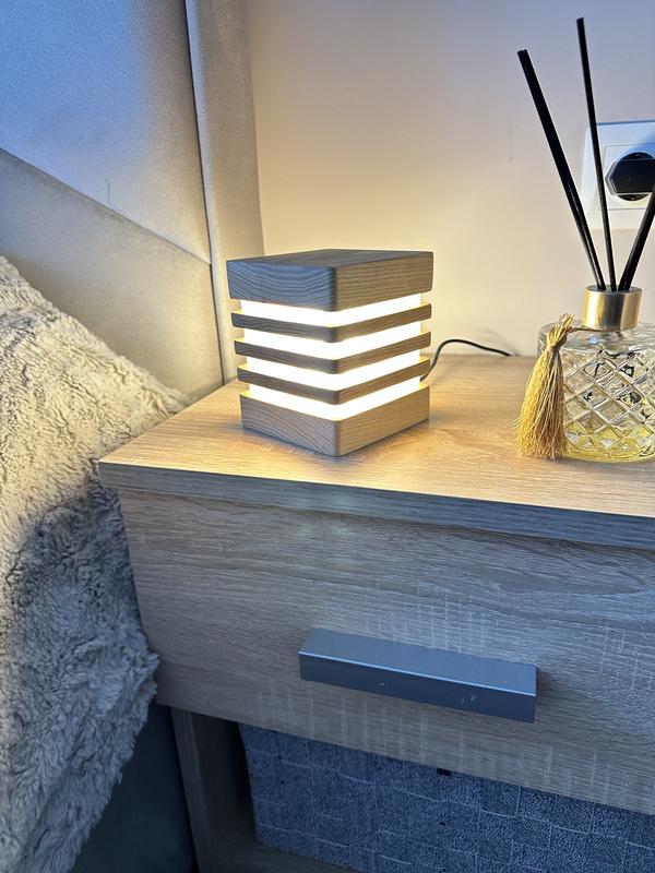 Характеристики: • світить м'яким нейтральним світлом, • сенсорний вмикач, • яскравість регулюється за допомогою довге натискання, • живлення від USB (зовнішній блок живлення, повербанк або роз'єм ноутбука), • тип розʼєму на лампі - type C. Колір на вибір. Матеріал : дуб ********************************************************************************
