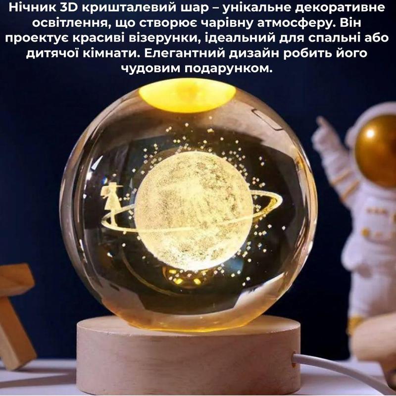 Нічник 3d кришталевий шар з гравіюванням сонячної системи, світлодіодна підсвітка, живленн...