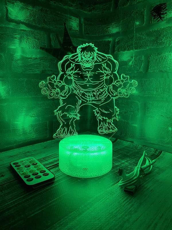 3d-лампа халк, подарунок для любителів супергероїв, 3d світильник або нічник, 7 кольорів і...