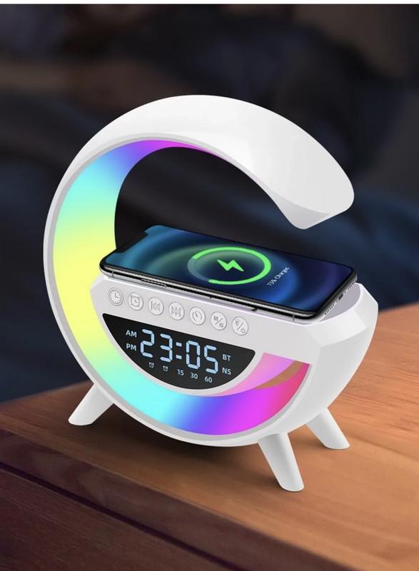 Настільна смарт лампа-нічник g-smart bt-3401 з бездротовою зарядкою, колонкою та годиннико...