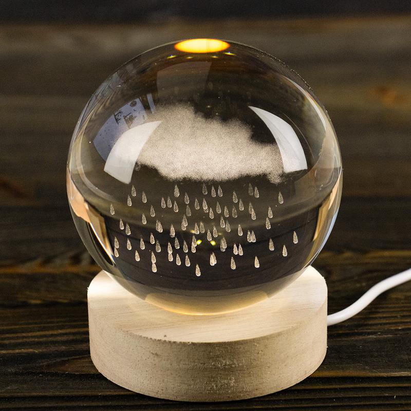 Нічник світильник 3d кришталева куля д8 хмарка 13414