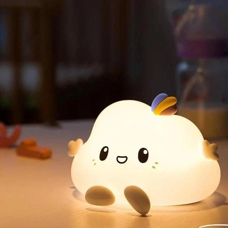 Силіконовий світильник "Малюк-хмара" -- оригінальний нічник, який прикрасить не лише дитячу спальню, а й чудово впишеться в інтер'єр будь-якої кімнати. М'яким, приглушеним світлом лампа у формі хмари огорне дитячу кімнату чарівною атмосферою, подарувавши дитині відчуття радості та захищеності. З цим чарівним казковим персонажем, що світиться, дитині буде зовсім не страшно засинати вночі. Лампа-нічник розроблена спеціально для тактильного спілкування зі світильником -- її можна взяти в руки, пом'яти, покласти в ліжко або просто поставити поряд. Це не просто силіконовий нічник, а й чудова іграшка, з якою дитина може не розлучатися не лише вдень, а й уночі. Характеристики: - Тип: світильник-нічник - Модель: "Хмара" - Матеріали: пластик, силікон - Розміри: 140 × 100 × 90 мм - Кольори: поєднання RGB + теплий білий - Напруга: 5 В - Потужність: 0,3 Вт - Ємність батареї: 1200 мА*год (модель 8650)