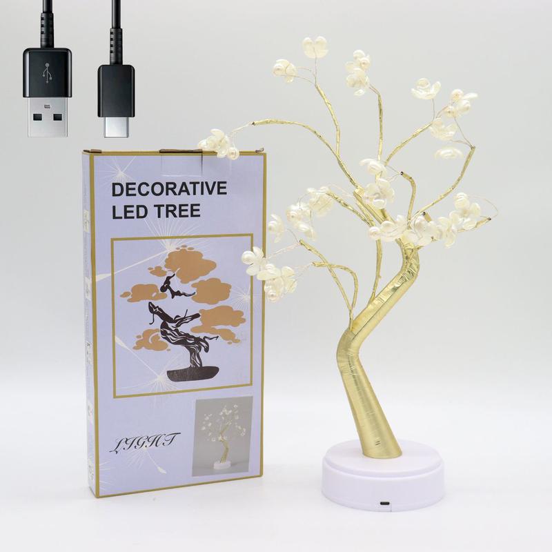 Ночник в виде дерева-бонсай с цветами (50см), от usb, теплый белый