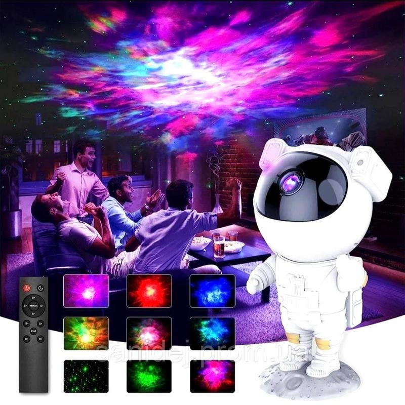 Проєктор зірки, Проєктор зоряного неба з сузір'ями, Проєктор зоряного неба нічник, NST Лазерний проєктор Зоряного неба «Астронавт» стане чудовим нічником для юних підкорювачів космосу й однією з улюблених іграшок! 8 різнобарвних зображень туманності з регульованою яскравістю зоряного неба оживлять і прикрасять не тільки дитячу кімнату, а й вечірку, сімейний перегляд кіно чи ігрову кімнату. Яскраві заворожливі зображення Галактики нічника відправлять вас у дивовижну подорож у відкритий космос, а різноманітність колірних ефектів дасть змогу повною мірою відчути пишність зоряного неба. Лазерний проєктор-нічник Космонавт — чудовий подарунок на День народження або будь-яке інше свято, сподобається як дітям, так і дорослим. 8 режимів. Нічник Зоряного неба має 8 приголомшливих різнобарвних ефектів туманностей, прикрашених мерехтливими зоряними вогнями. Водночас туманності та зірки можна вмикати як окремо, так і в комбінації. Об'єктив проєктувальної лампи на шоломі астронавта має високу чіткість. Тому зображення-проєкція виходить дуже реалістичною, чудово передаються всі деталі та яскравість картинки. Спрямовуйте об'єктив на стіну або стелю вашої кімнати, і він принесе вам космічне світло галактики, створивши спокійну та розслаблювальну атмосферу. Пульт дистанційного керування та функція таймера. Для максимальної зручності проєктор нічник Астронавт обладнаний пультом дистанційного керування з діапазоном дії 5 м. З його допомогою ви з легкістю можете регулювати колір, яскравість і швидкість обертання туманності, частоту миготіння і яскравість зоряного неба. Крім того, ви можете встановити таймер на 45 або 90 хвилин, і в цьому разі зоряний нічник проєктор для дітей автоматично вимкнеться. Вам не знадобитися вставати з ліжка, щоб вимкнути його, або зайвий раз заходити в дитячу, ризикуючи розбудити дитину. Інноваційний дизайн і регульований кут проєкції. Зірковий проєктор нічного неба виготовлений у формі компактної фігурки астронавта (висота 24,5 см), одягненого в білий скафандр, а підставка імітує поверхню Місяця. Голова та тіло з'єднані магнітною абсорбцією, тому голова може легко обертатися на 360°. Оскільки проєктувальна лампа нічника Зоряне небо розташована в шоломі астронавта, повертаючи голову, ви можете регулювати напрямок і кут самої проекції. Місячна основа знімна, а руки космонавта рухливі, щоб приймати різні пози. Лазерний нічник проєктор зоряного неба вирізняється футуристичним дизайном, продуманим до дрібниць, і стане чудовою декоративною прикрасою для будь-якого інтер'єру. Якість матеріалів і безпека. Світильник Зоряне нічне небо виготовлений із якісного та міцного ABS-пластику. Матеріал екологічний і не має неприємного запаху, завдяки чому безпечний для здоров'я ваших дітей. Важливо! З огляду на те, що джерело світла досить потужне, дивитися прямо в проєктор не рекомендується, щоб не створювати напруження на сітківку ока. Характеристики: - Матеріал корпусу: ABS пластик - Джерело світла: світлодіодна лампа проєктор Зоряне небо - Режим перемикання: пульт дистанційного керування - Джерело живлення світильника: мережа 220 В або USB - Джерело живлення пульта: батарейки АА - Діапазон дії пульта: 5 м - Режими світіння: 8 - Потужність світіння: 5 Вт - Довжина хвилі лазера: 532 НМ - Довжина шнура живлення: 1,5 м - Розміри: 12х12, 3х22,8 см - Ва