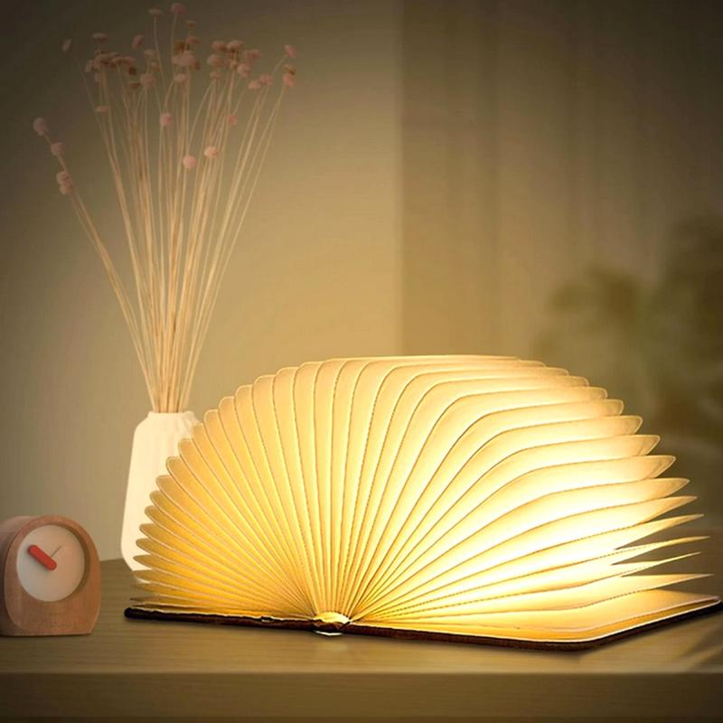 Нічник декоративний, Нічник у дитяче ліжечко, Нічник у передпокій, Нічник дизайнерський, NST Внесіть чари у своє життя за допомогою складаної книжкової лампи. Освітіть свій світ унікальним і чарівним способом. На перший погляд здається, що це звичайна книга, але насправді це портативна складана книжкова лампа, яку можна легко прикріпити до будь-якої металевої поверхні, включно з холодильником. У вимкненому стані він приховує свою справжню сутність; під час освітлення він перетворюється на чарівну книгу, яка, здається, містить мудрість, що перевершує уяву. Світильник у формі книги добре впишеться в будь-який інтер'єр. Для увімкнення нічника досить відкрити книгу, а для вимкнення закрити її. Під час кожного відкриття книга змінюється колір (м'який жовтий, червоний, зелений, синій і останній — режим світіння, що динамічно змінюється). Розкриваючи «книгу» ширше — вийде більший потік світла, можна також розкрити її на 360 градусів, перетворивши на імпровізований світний віял. Живлення економних світлодіодів, що забезпечують світіння, виробляється завдяки вбудованому літій-іонному акумулятору, ємності якого вистачає на тривалий час (від 4 до 8 годин). Характеристики: - Робоча напруга: 5 В/1 А - Ємність акумулятора: 1000 мА - Термін служби світлодіодів: приблизно 50000 годин - Колірна температура: 4500К - Потужність: 400 люменів - Джерело живлення: вбудований літій-полімерний акумулятор, що перезаряджається - Магнітні чохли, які можна прикріпити до будь-якого металевого предмета на стіні - Матеріал виробу: дерево та вологостійкий папір Tyvek - Розміри в закритому стані: 9 х 12 х 2 см - Відкривши на 180 градусів — 18 x 12 x 8,5 см Комплектація - Книга-нічник. - USB-кабель. - Паковання.