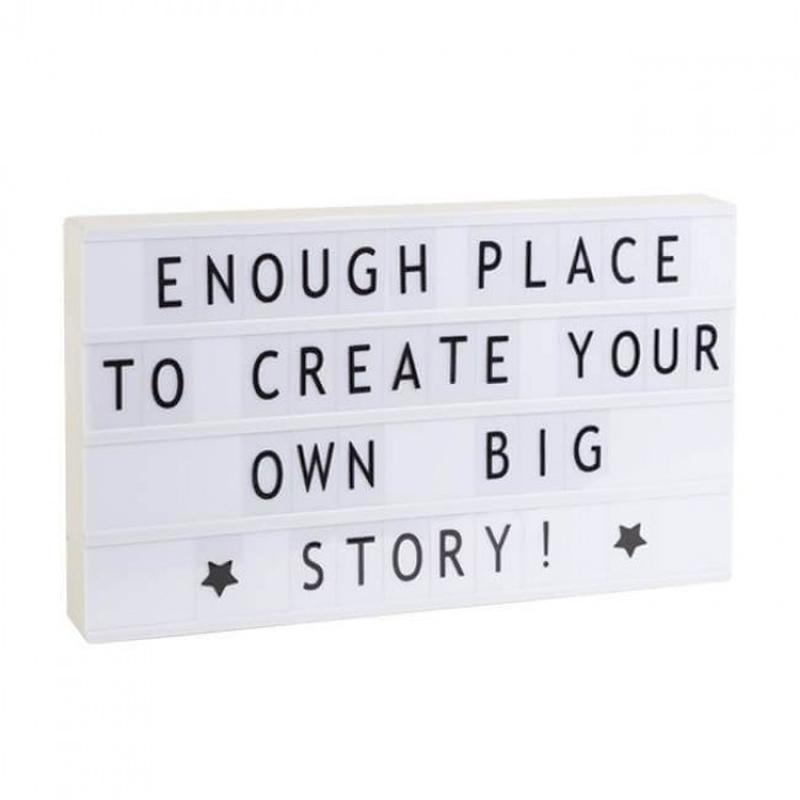 Большой киношный лайтбокс 50 х 29 х 5,5 см см - это стильный, напоминающий винтажные вывески ночник. Вы можете помещать буквы между направляющими рельсами и создавать оригинальные послания, напоминалки, крылатые фразы или своё кредо. 80 букв и значки в комплекте. Питание от USB и от батареек. Lightbox можно использовать для обучения деток, может быть ночником или стильным предметом интерьера, можно использовать на витринах или как мимоход и очень просто доносить до окружающих ваши сообщения. Размер лайтбокса A3: 50 х 29 х 5,5 см. В комплекте 80 букв латинского алфавита. С выключателем off/on. Питание от батареек 6 шт AA (в комплект не входят) или USB. Также можно использовать с адаптером (9v DC 500 mA), в комплект не входит, можно приобрести отдельно.